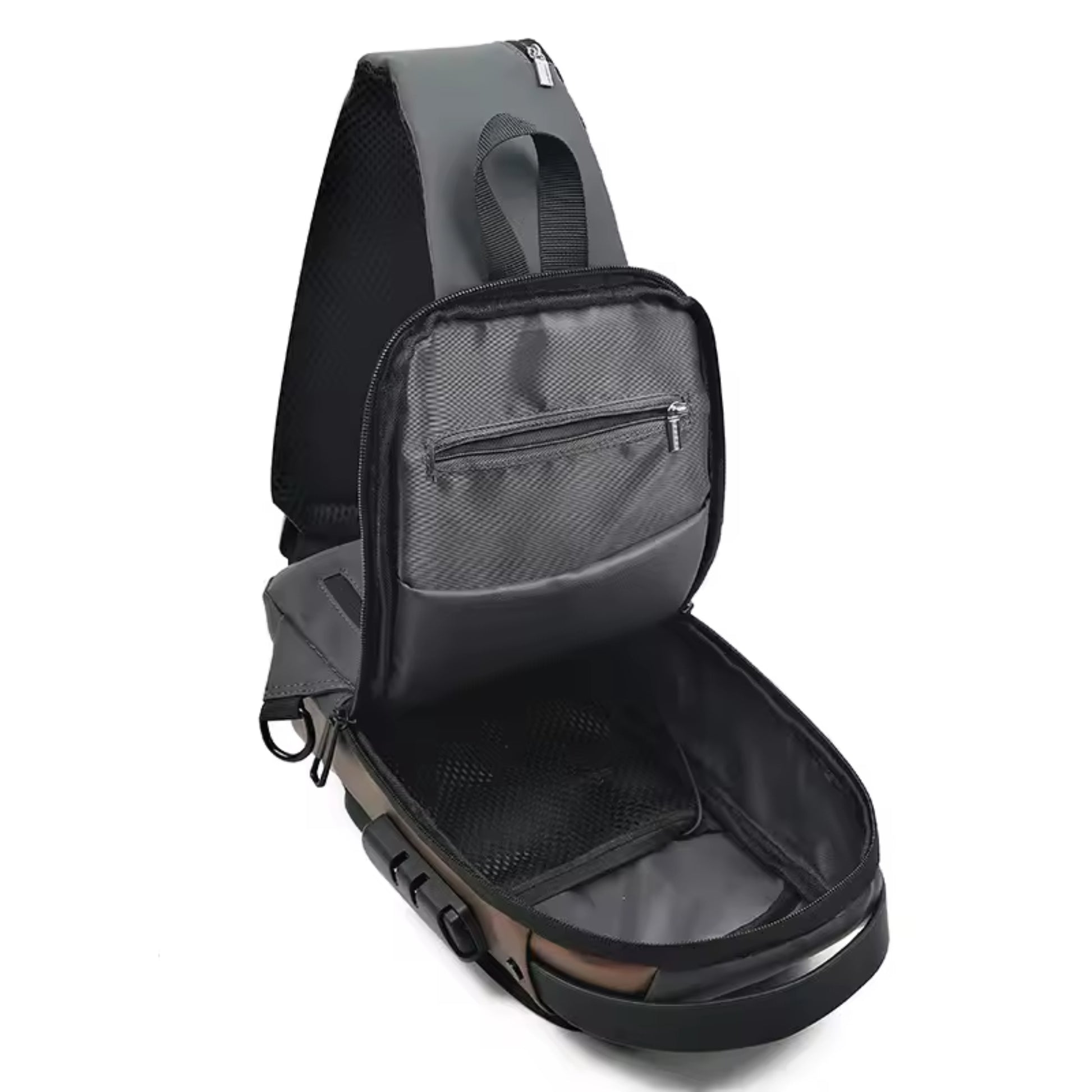 La mochila incluye un candado con clave numérica que mantiene tus pertenencias protegidas en todo momento. Ideal para transporte público, facultad, viajes y días con mucha movilidad.